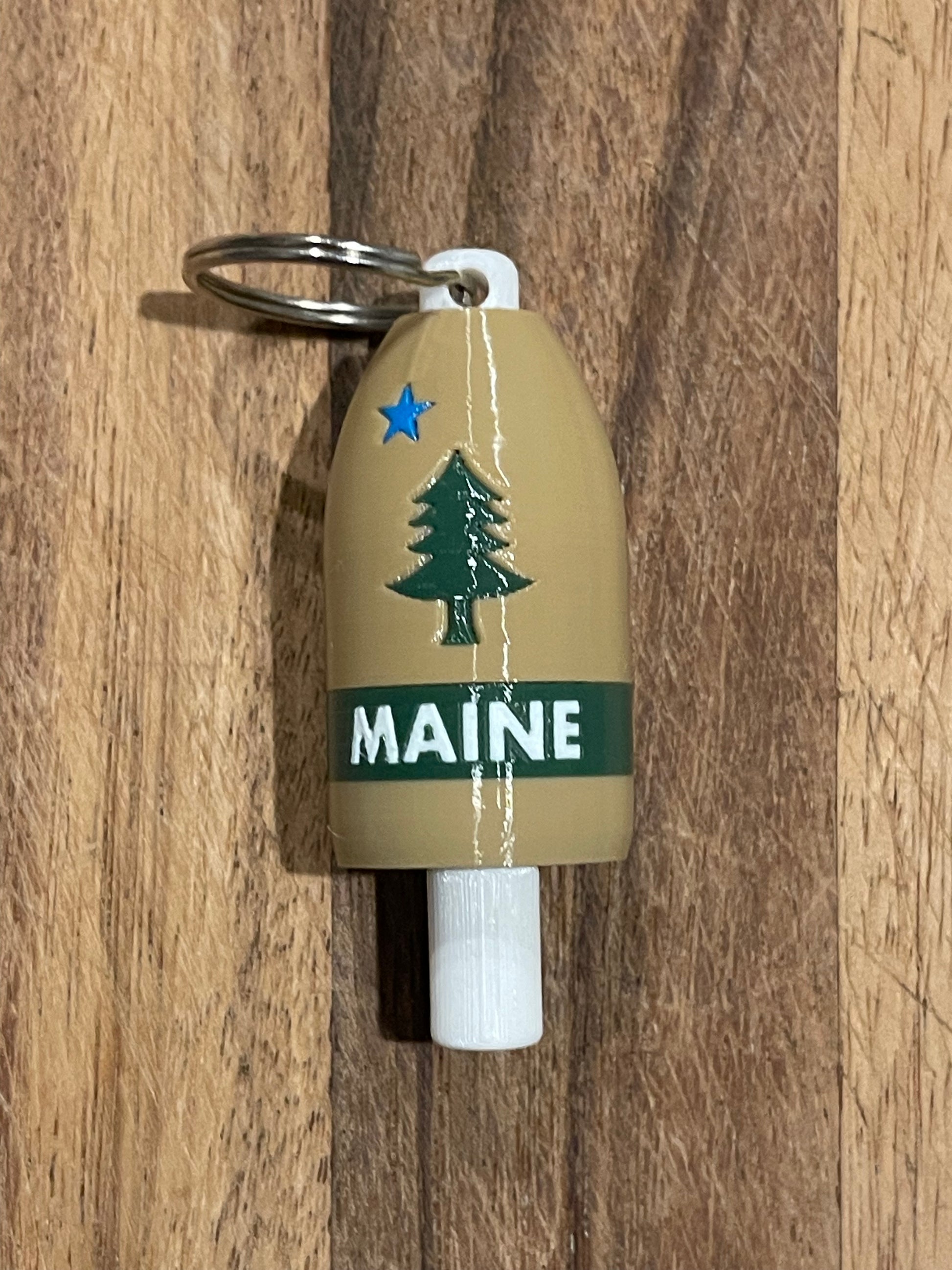 Tan Brown 1901 Maine State Flag Keychain Buoy